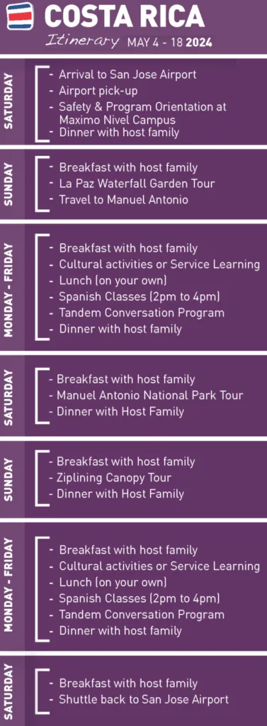 Learn Spanish in Manuel Antonio, Costa Rica with experienced, certified, native Spanish instructors. Students are split according to level in small group classes for 2 hours per day. Additional cultural and social activities in the afternoons and evenings include salsa dance classes, and cooking classes. Spanish classes focus on the Communicative Method of language teaching, which immerses students in spoken Spanish—students are always speaking in class. The immersion experience is further enhanced by living with a local host family.